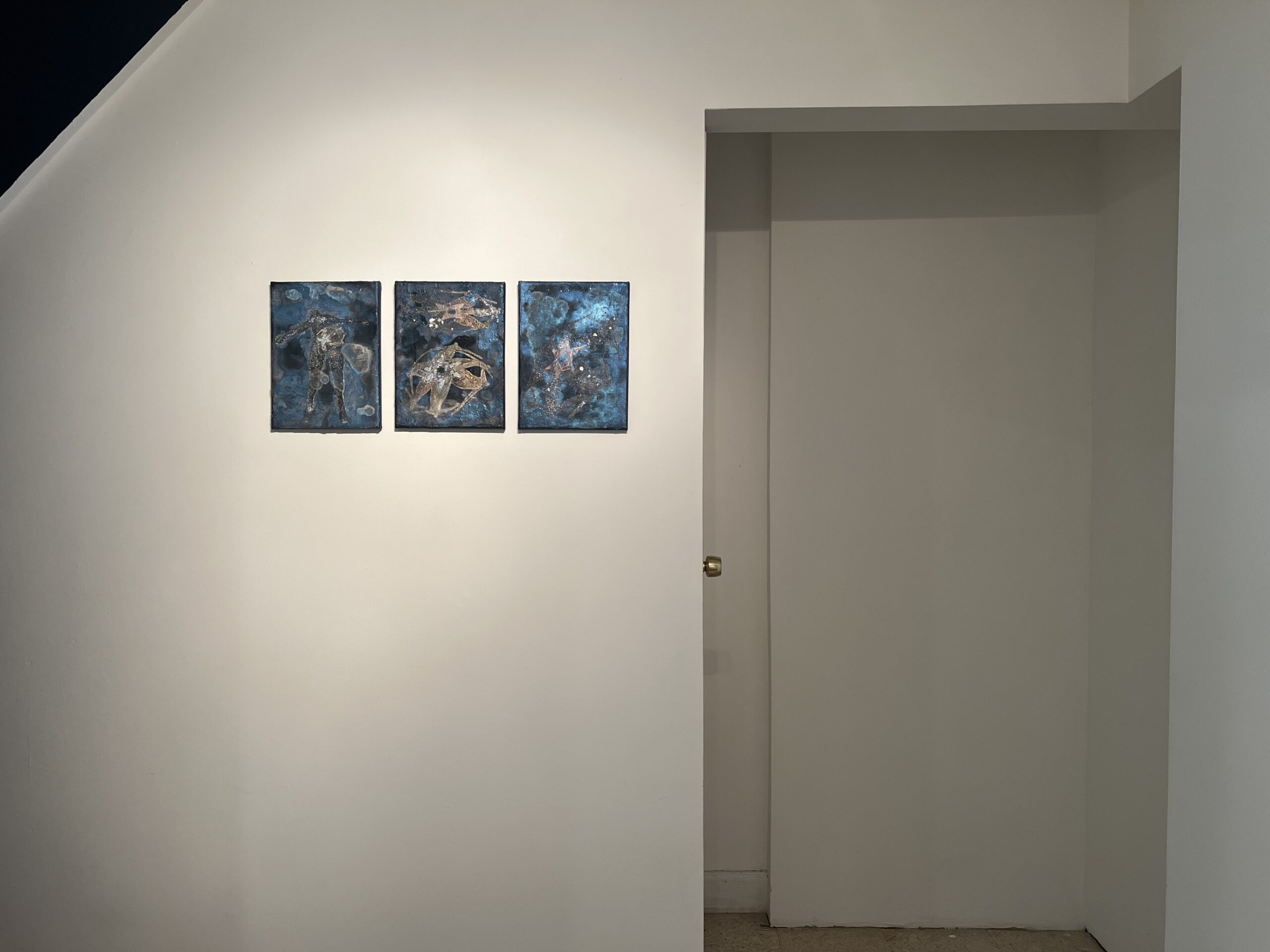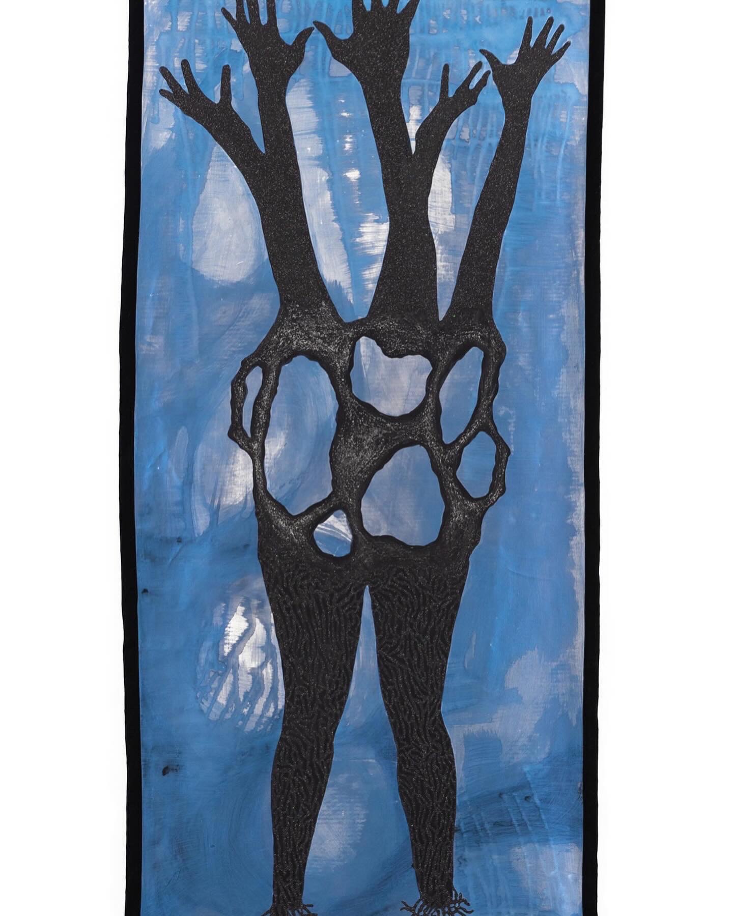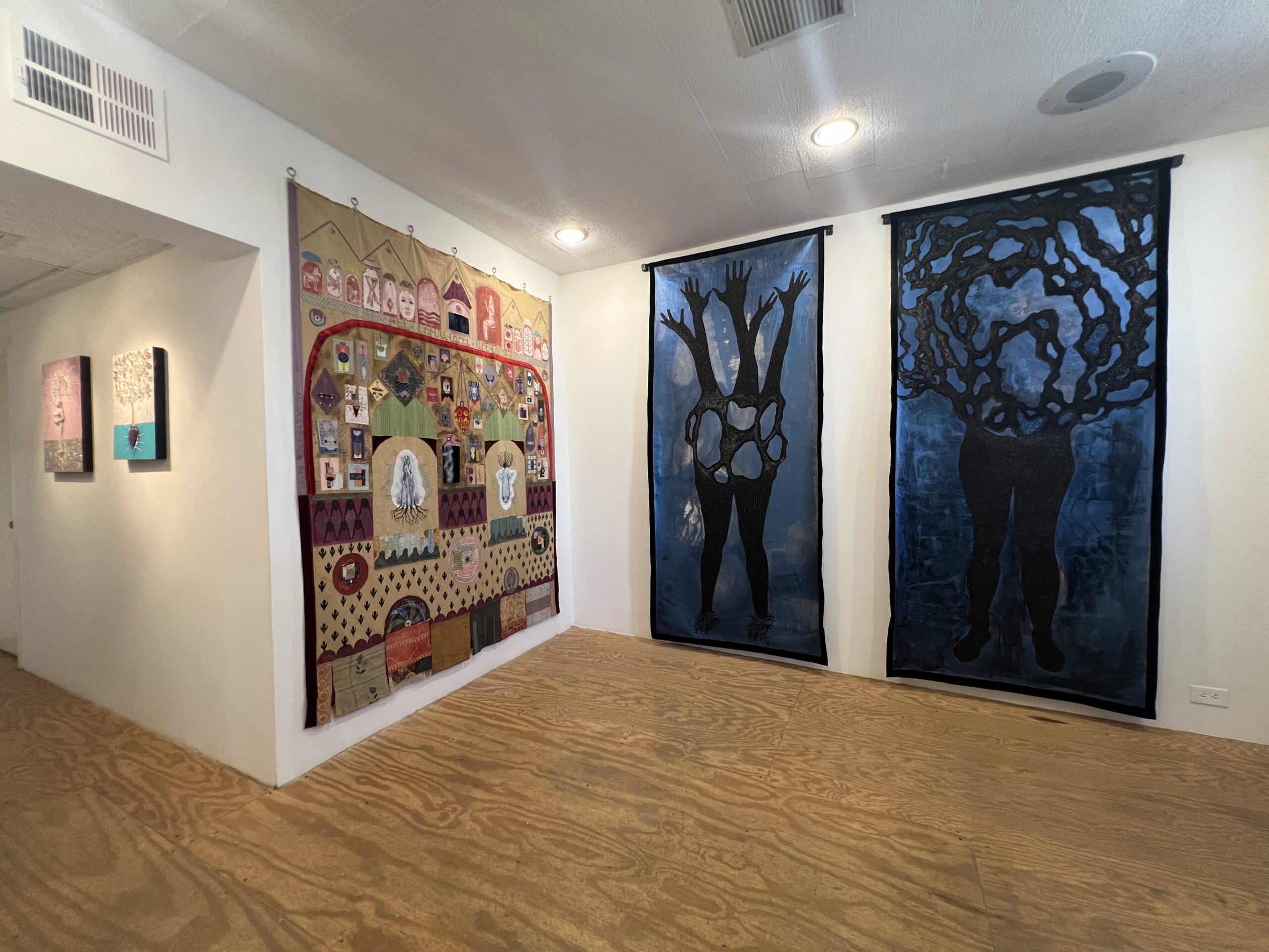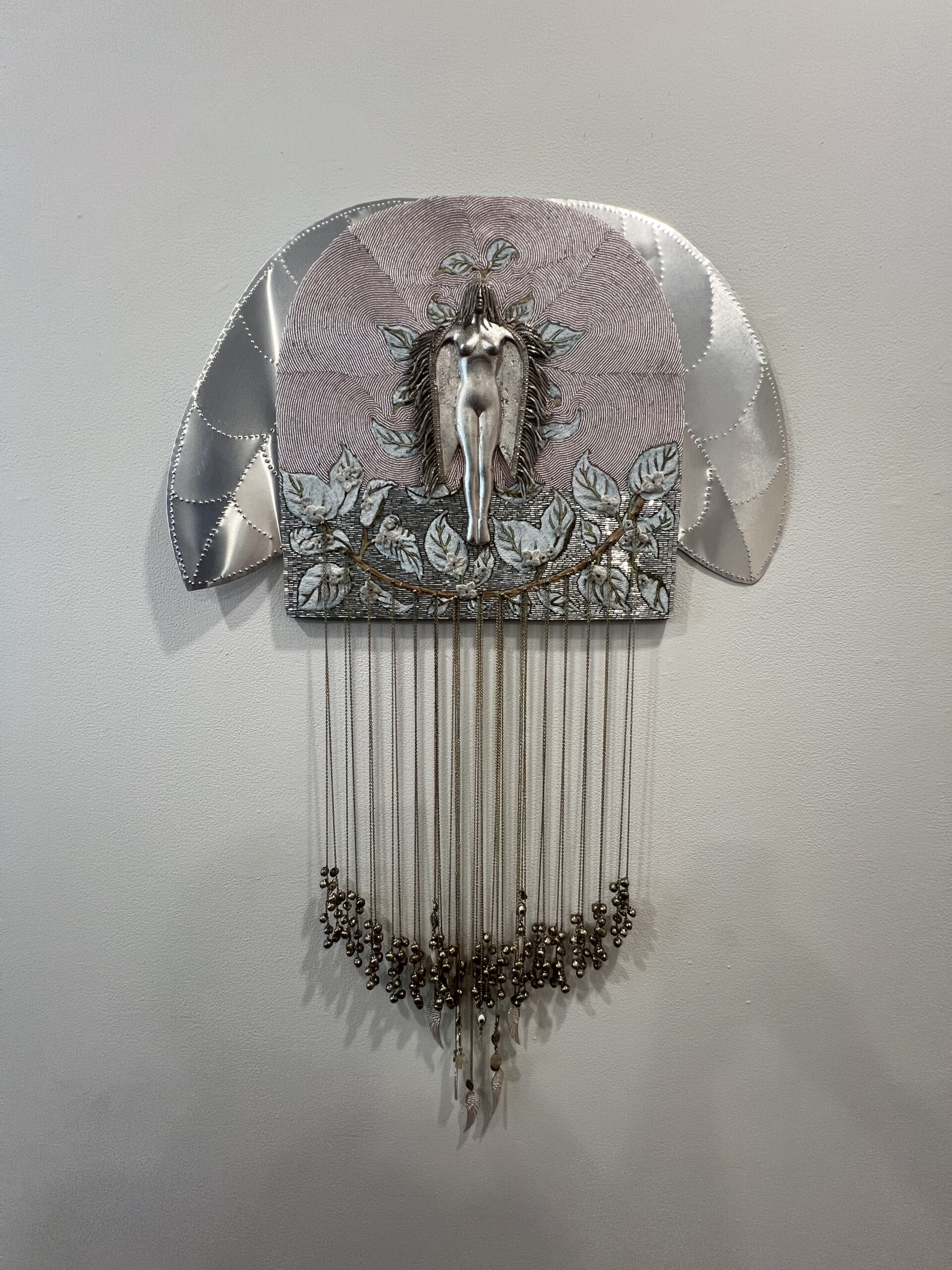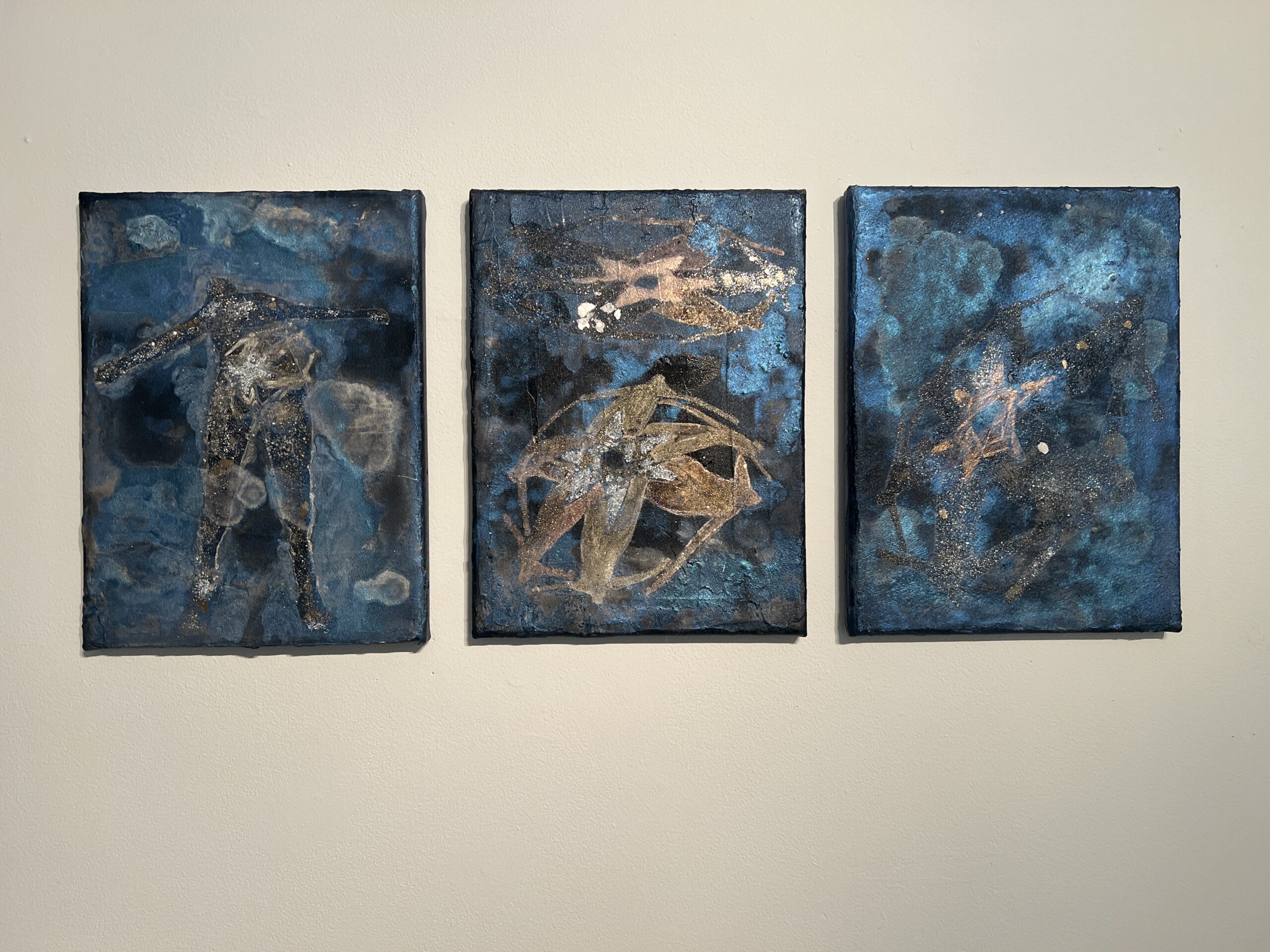 grounded in ancestral reverence, intuitive research, and visual theology. She explores themes of shadow work and mythopoetics as well as the emotional and energetic residues of loss through a spiritual and material lens. Her practice engages the unseen, what is felt but not always visible, through a framework shaped by animism, spiritual inheritance, and metaphysical inquiry.