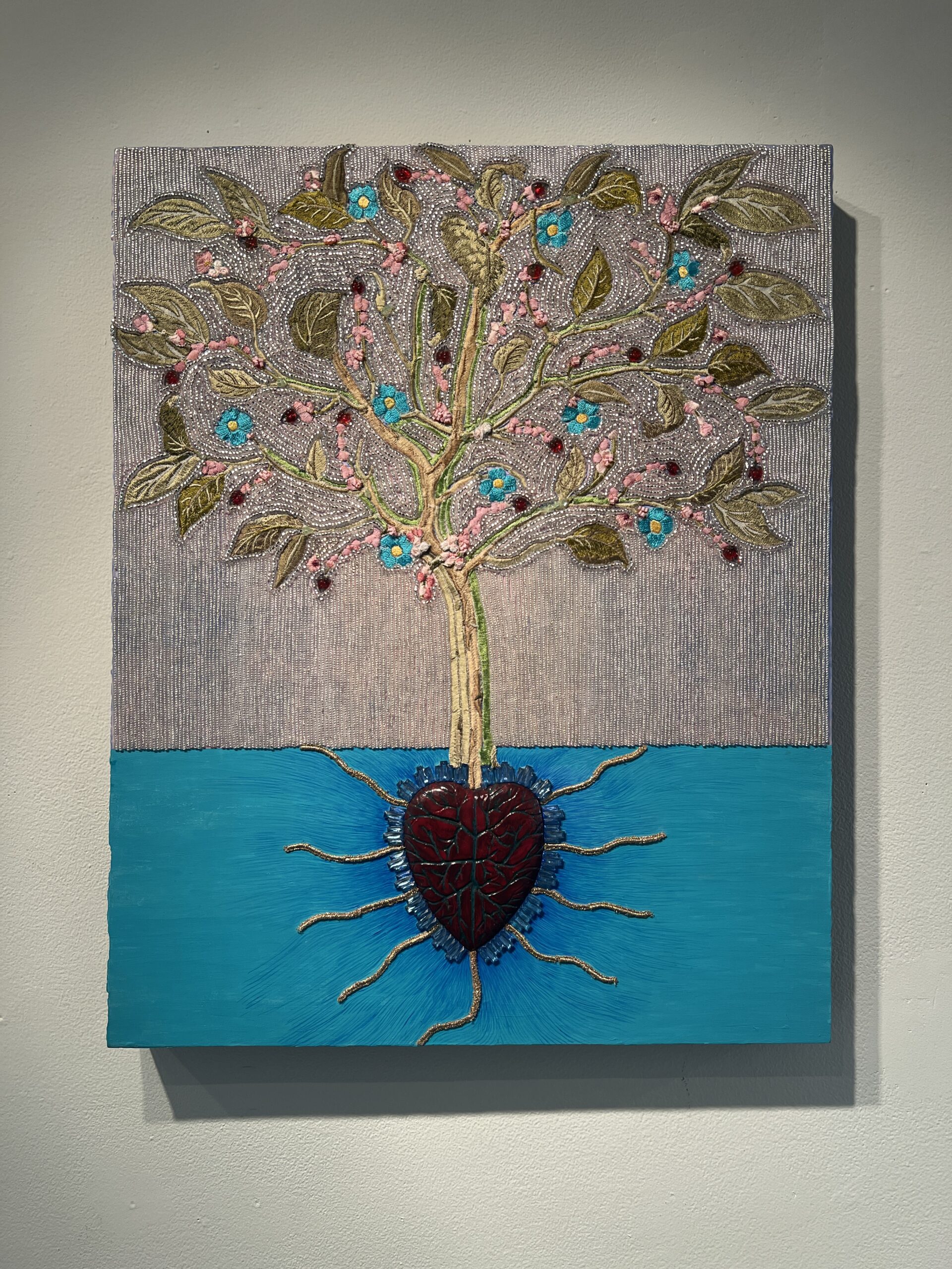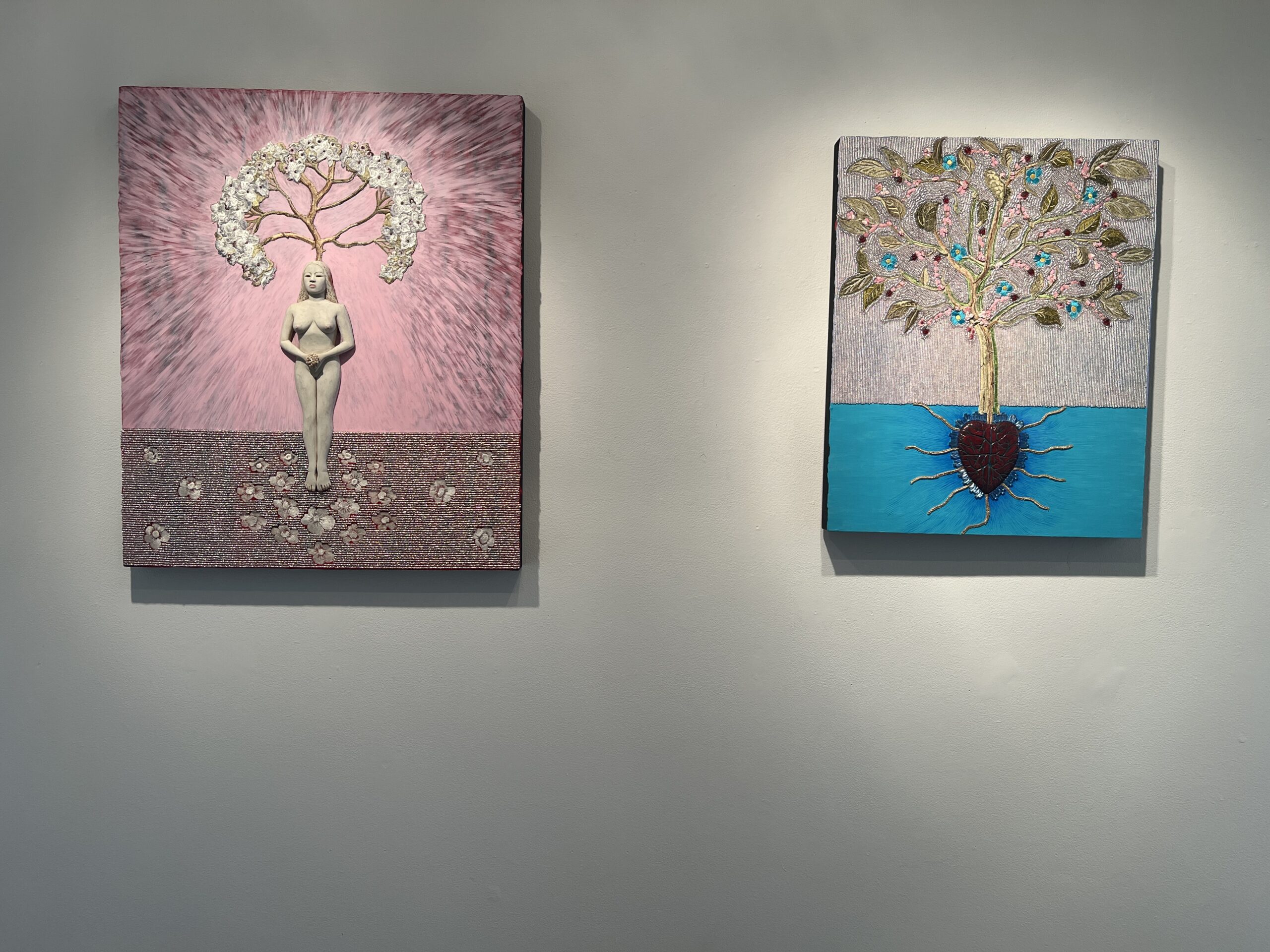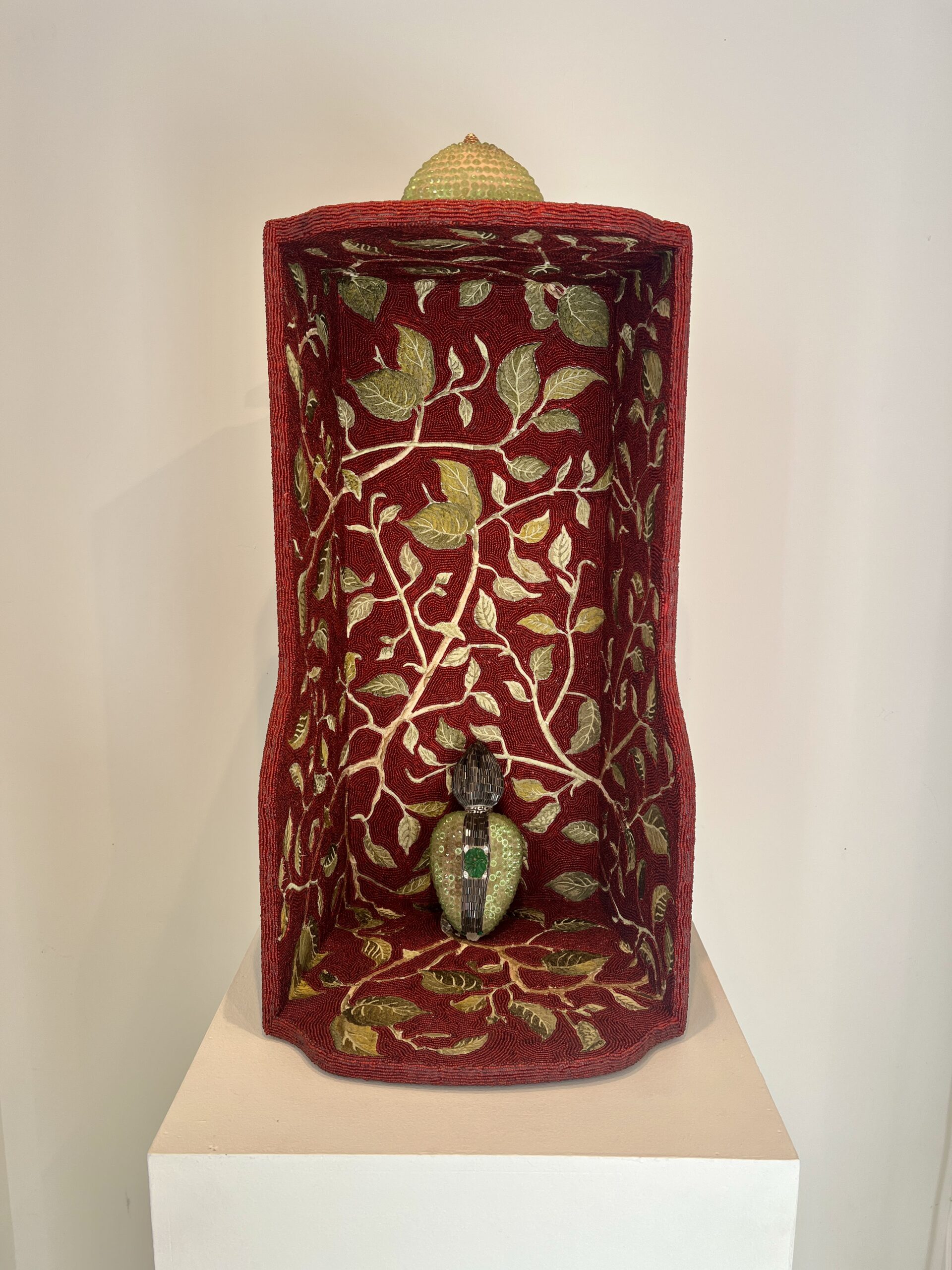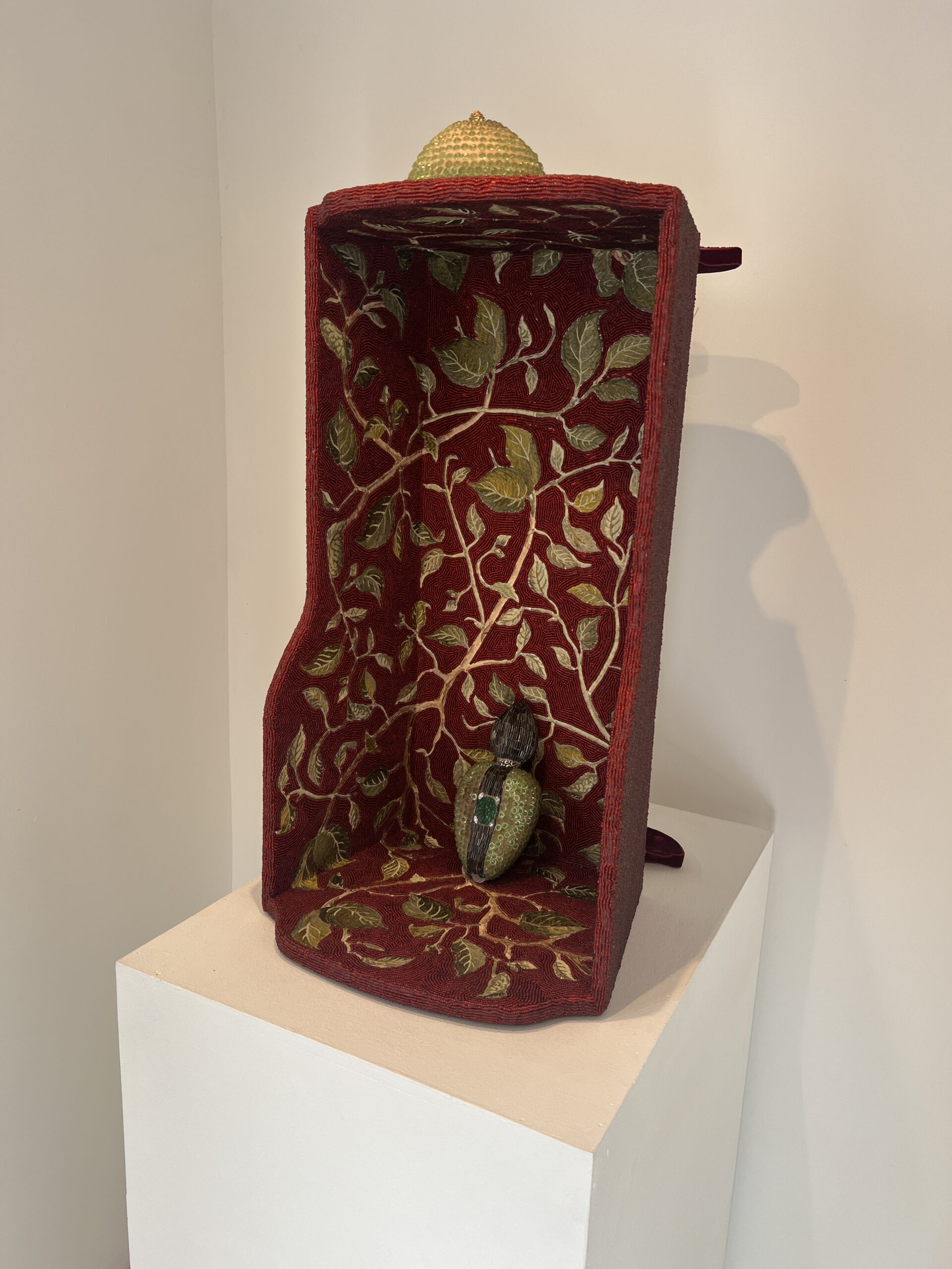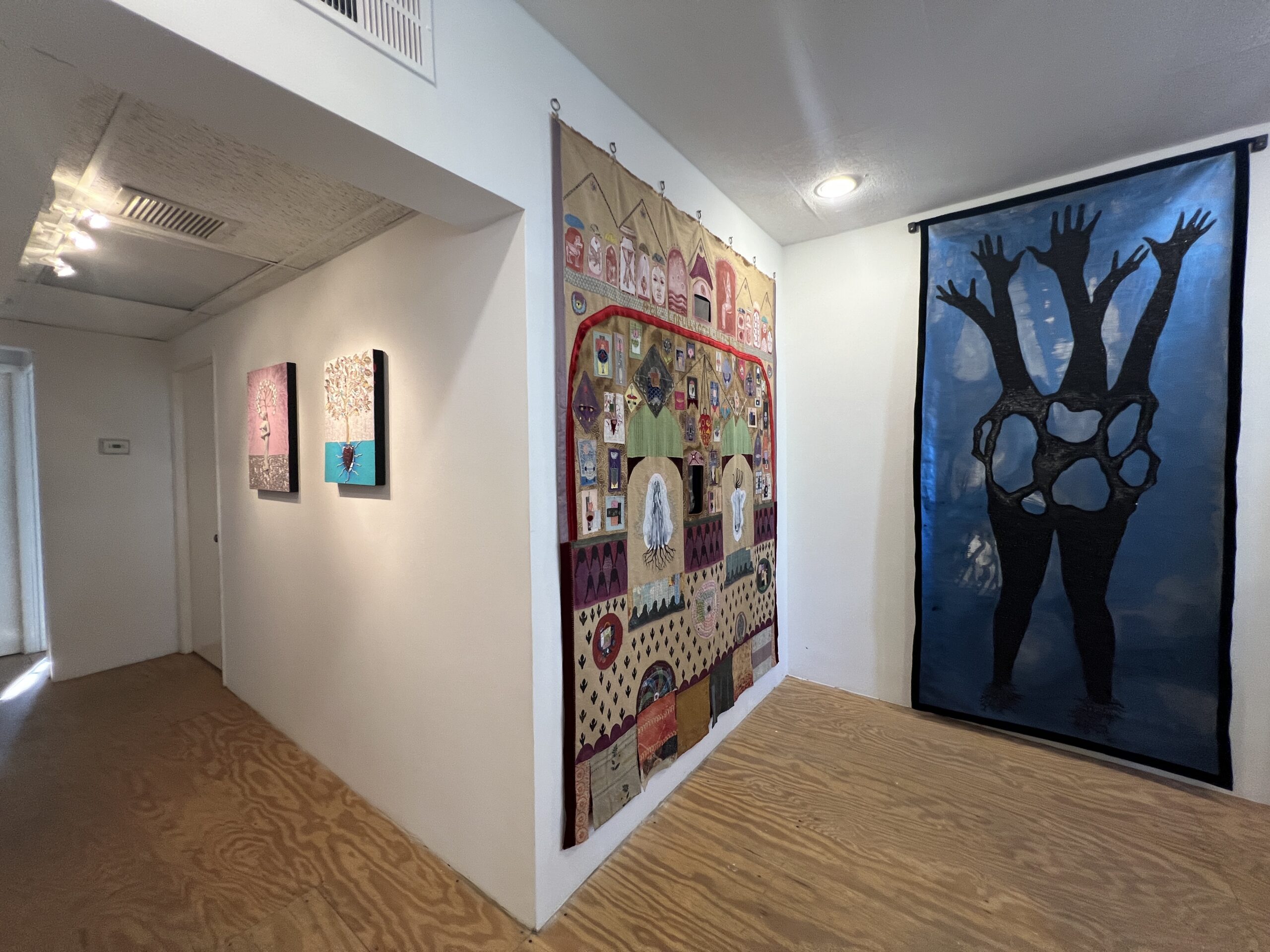 grounded in ancestral reverence, intuitive research, and visual theology. She explores themes of shadow work and mythopoetics as well as the emotional and energetic residues of loss through a spiritual and material lens. Her practice engages the unseen, what is felt but not always visible, through a framework shaped by animism, spiritual inheritance, and metaphysical inquiry.